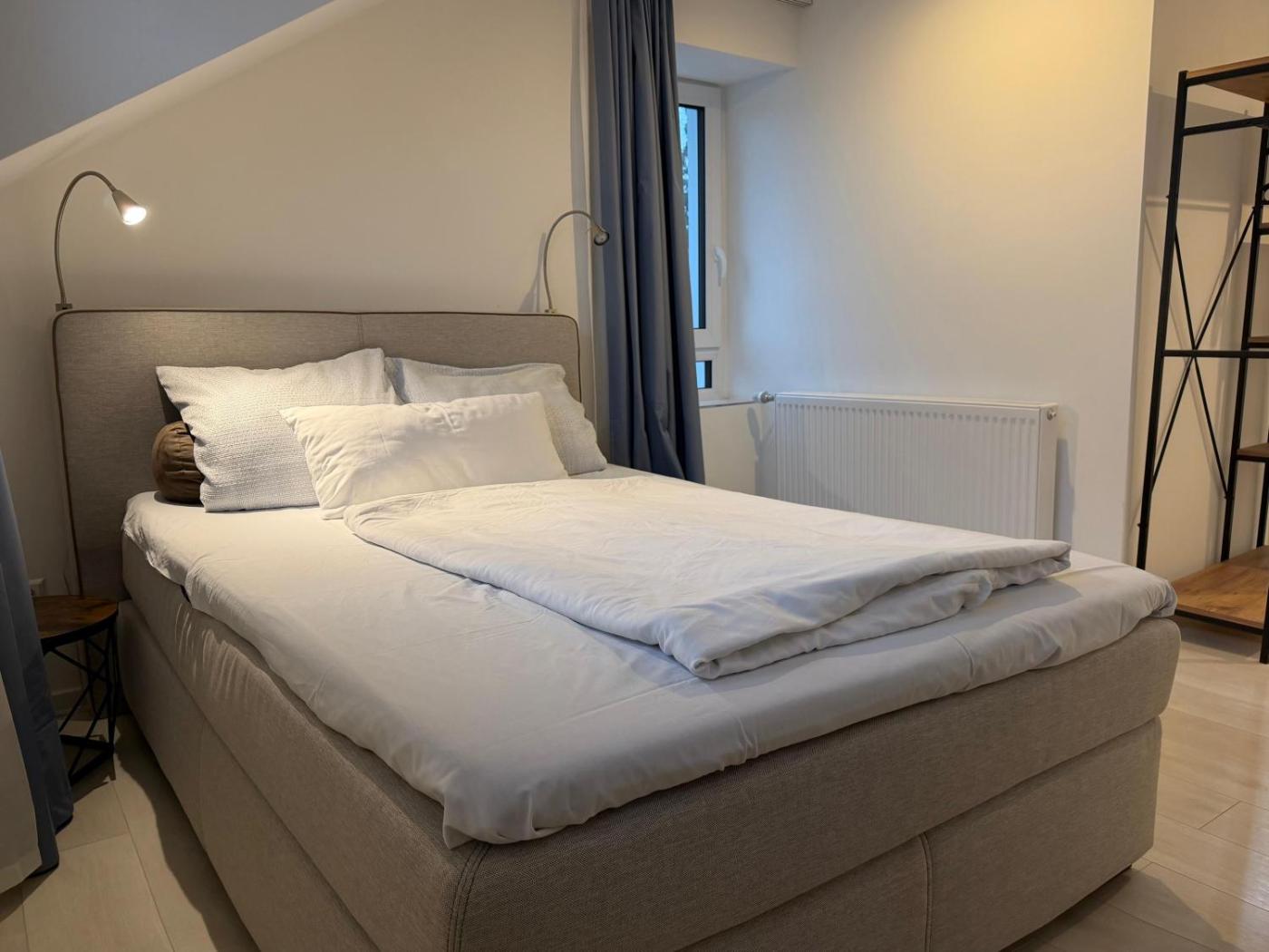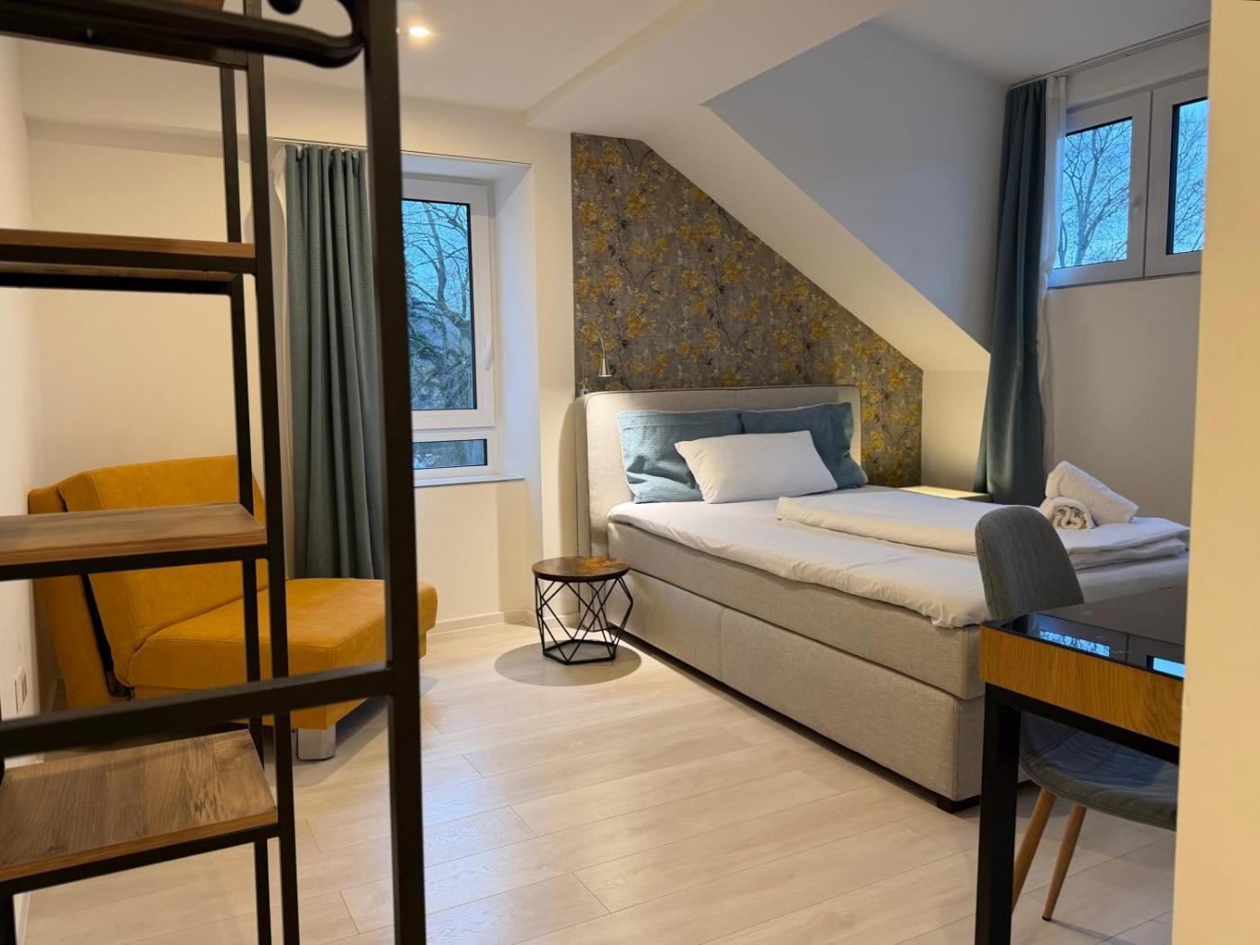 Doppelzimmer (1 Erwachsener + 1 Kind). The double room offers a private entrance, a tea and coffee maker, as well as a private bathroom featuring a walk-in shower and a hairdryer. The double room features a wardrobe, parquet floors, heating, a flat-screen TV, as well as city views. The unit offers 1 bed. ;