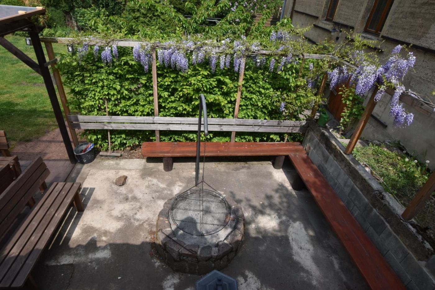 Vierbettzimmer mit Gemeinschaftsbad. The quadruple room offers a washing machine, a barbecue, as well as a shared bathroom featuring a shower and a hairdryer. The quadruple rooms kitchen is available for cooking and storing food. Guests can enjoy an outdoor dining area and outdoor furniture. The unit offers 4 beds. ;
